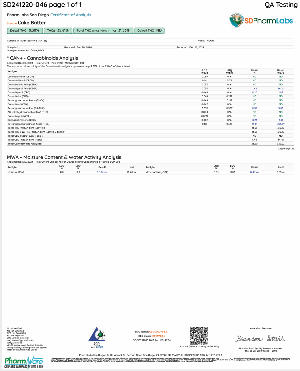 Cake Batter Is A THCA Flower Strain That's Grown Organically In A State Of The Art Indoor Facility.